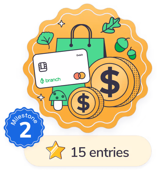 From November 15th to December 5th, all your spending from your Branch Wallet helps you reach milestones that give you up to 45 entries in our $1,000 giveaway!