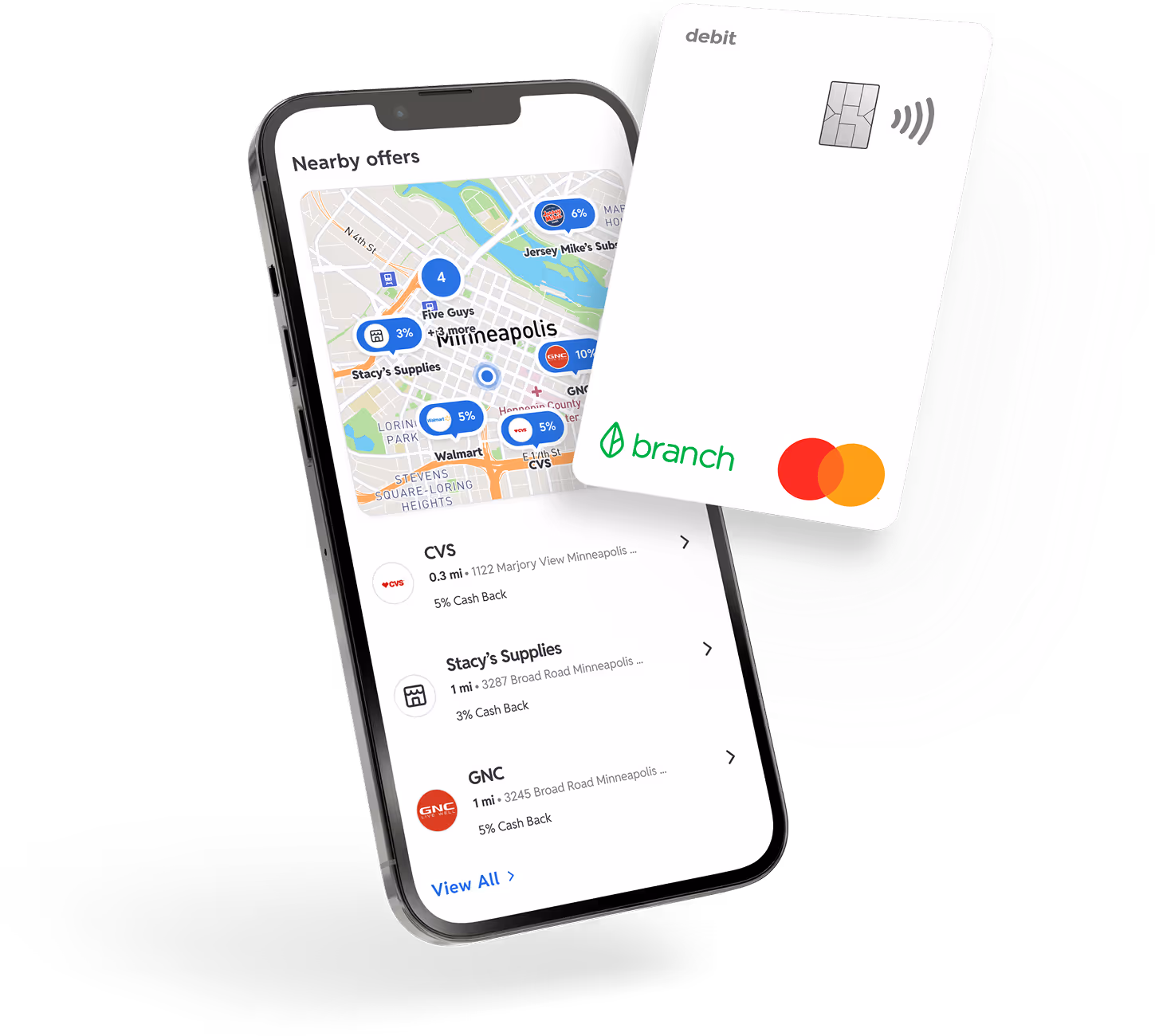 Branch has partnered with thousands of restaurants, stores, and online merchants to offer cashback rewards to you! Simply navigate to the Rewards tab in the Branch App to find participating locations near you.