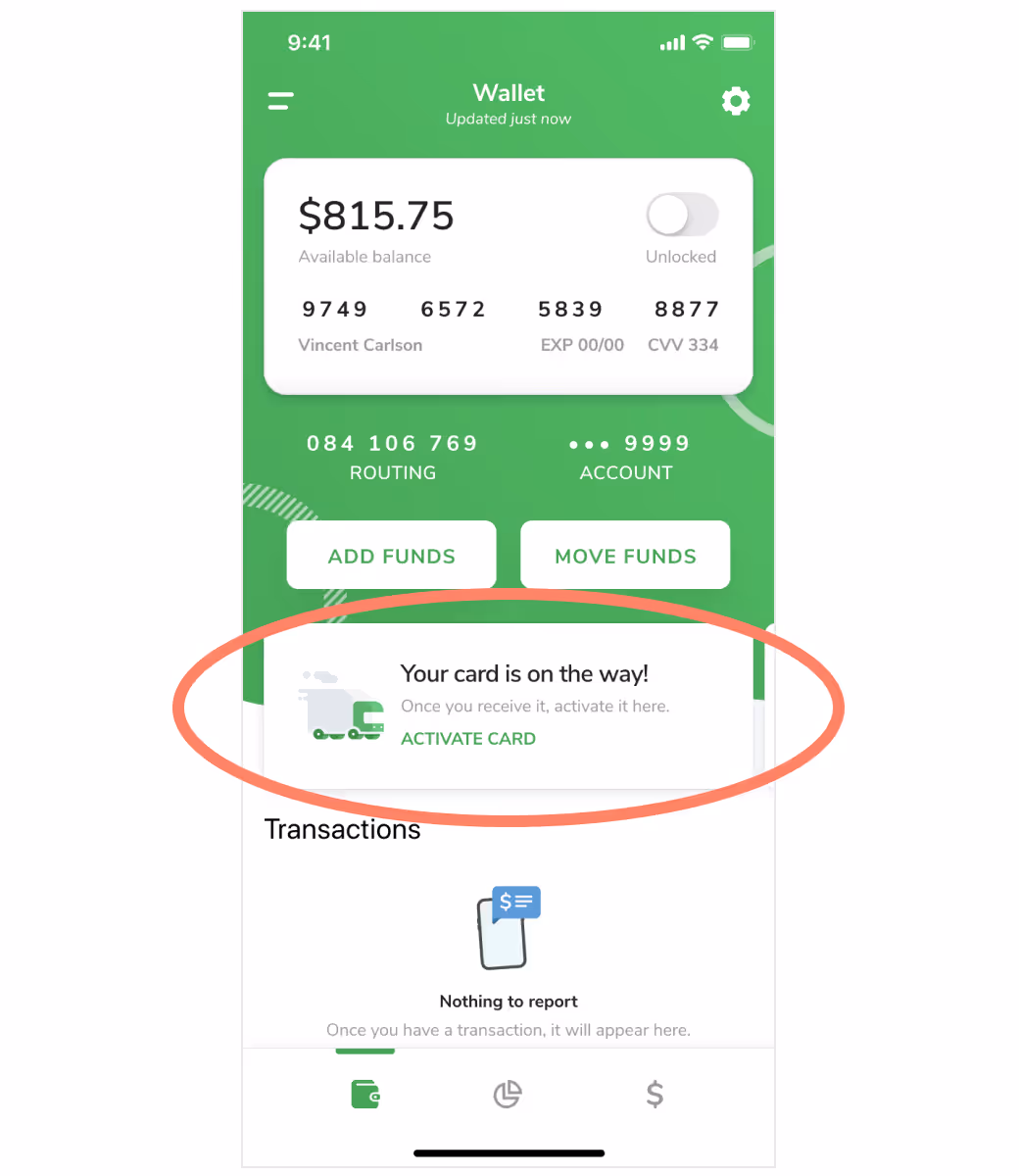 - If you have the QR code from your card mailer, activate through the Branch App by clicking Activate Card in your Wallet tab and then scanning the QR code.